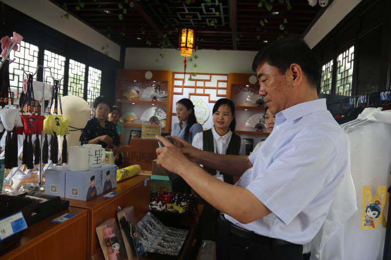 考察團在參觀(guān)考察木蘭花鄉商業(yè)街的時(shí)候,駐足于“木蘭有禮”店面,被木蘭將軍的神韻所吸引,對店內琳瑯滿(mǎn)目的商品產(chǎn)生了濃厚的興趣。