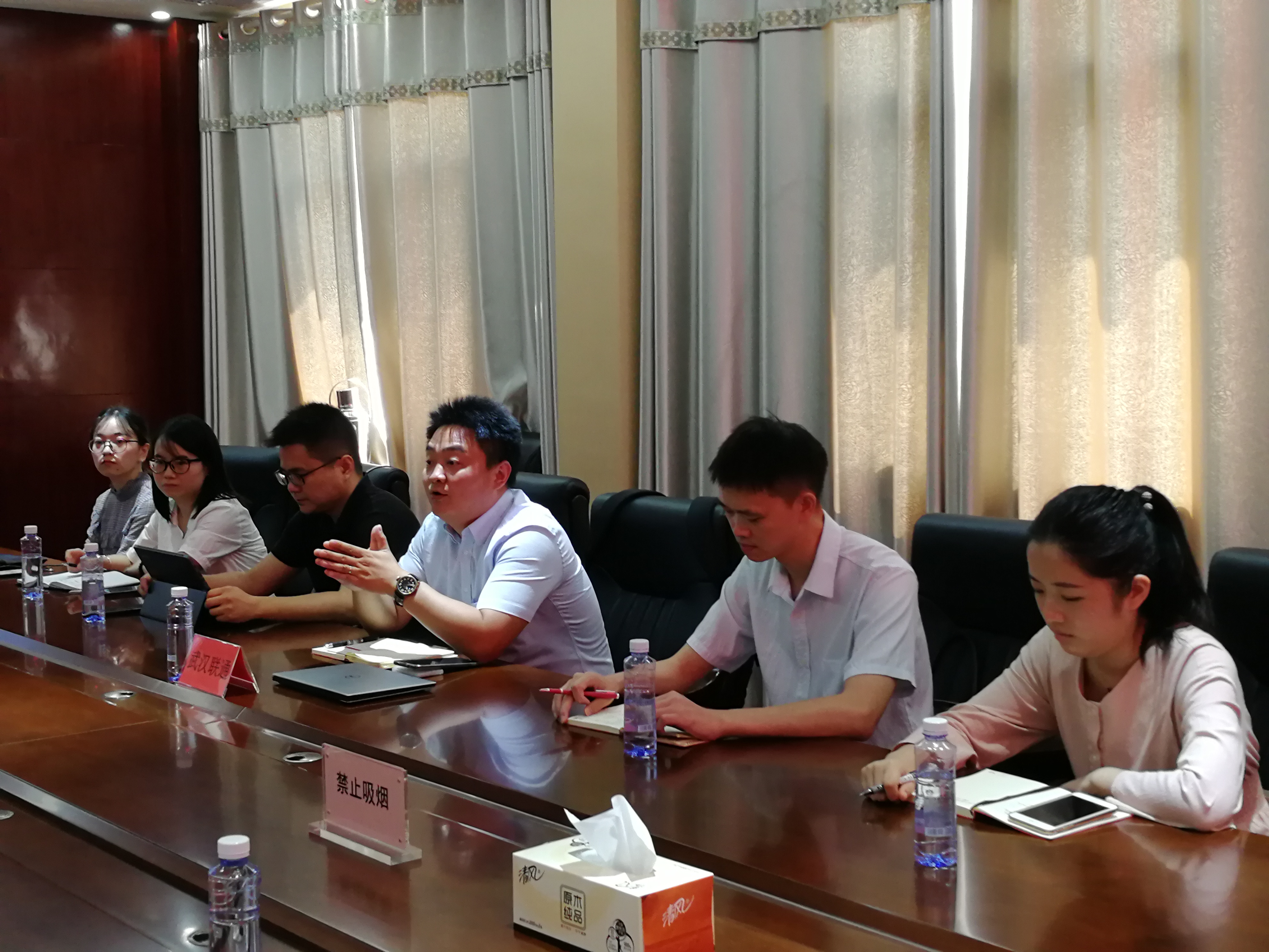 木蘭文創(chuàng )總經(jīng)理高輝首先向吳總表達了公司創(chuàng )建智慧旅游平臺的背景、目的和意義,并就智慧旅游建設的后續工作提出立足管理、立足體驗、立足效益、立足現有基礎的“四個(gè)立足”行事方針,要求平臺建設要緊貼黃陂本身的地域特色,因地制宜,做到接地氣,以此才能為游客歡迎和接受。