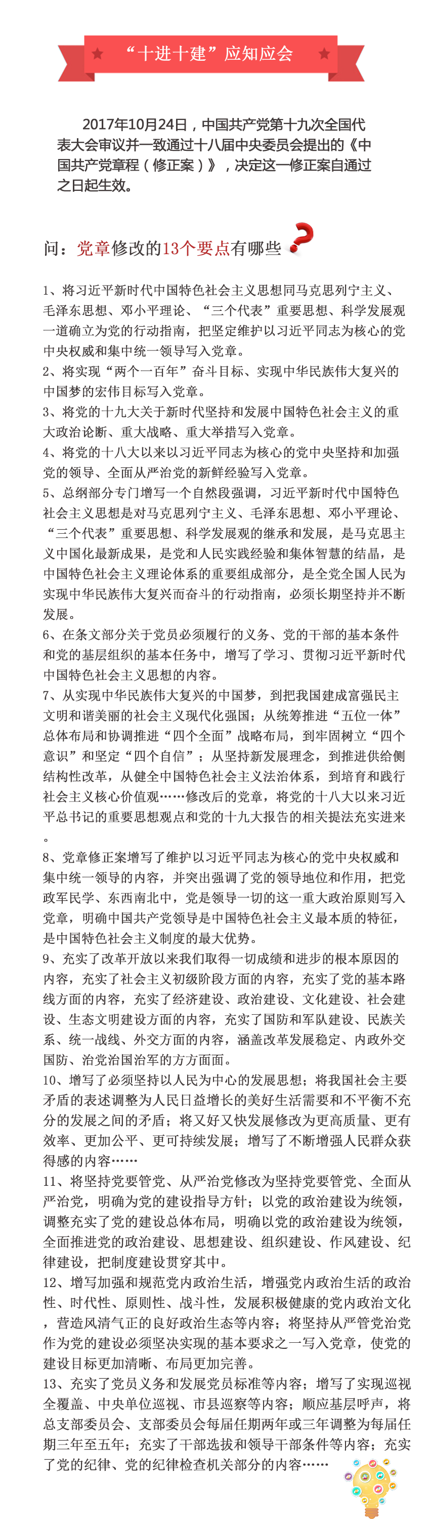 什么是“十進(jìn)十建”? 一是進(jìn)黨委(黨組)工作議程和中心組學(xué)習安排,建立健全日常工作和學(xué)習制度; 二是進(jìn)黨政機關(guān)日常工作和學(xué)習安排,建立健全機關(guān)紀委和紀檢員日常...2018-10-12